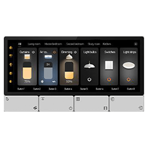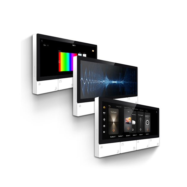 تاچ پنل 6.2 اینچی کنترل مرکزی خانه هوشمند دارای کلید 4پل داخلی دارای 2 خروجی باند سیمی قابل اتصال به بلوتوث دارای مادون قرمز داخلی